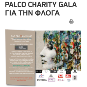 Με πολύ μεγάλη επιτυχία πραγματοποιήθηκε το πρώτο PALCO GRANDE CHARITY GALA για την ενίσχυση του Συλλόγου “Φλόγα”, το οποίο διοργάνωσε η εταιρία Palco Professional, στο Ίδρυμα Μιχάλης Κακογιάννης, την Κυριακή 19 Οκτωβρίου 2014.